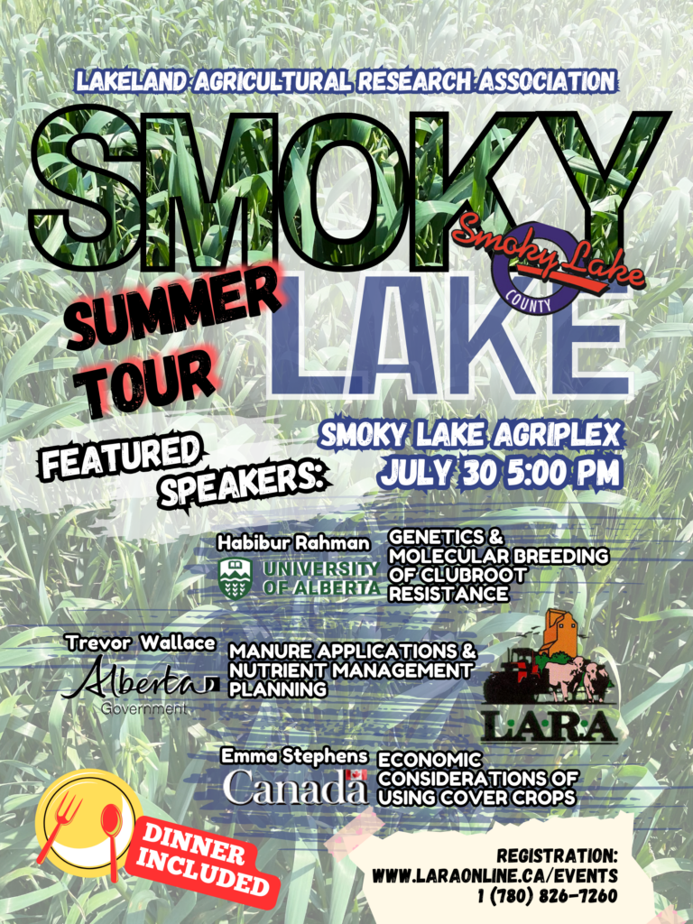 We will be viewing Lakeland Agricultural Research Association’s research site in Smoky Lake County, that includes: