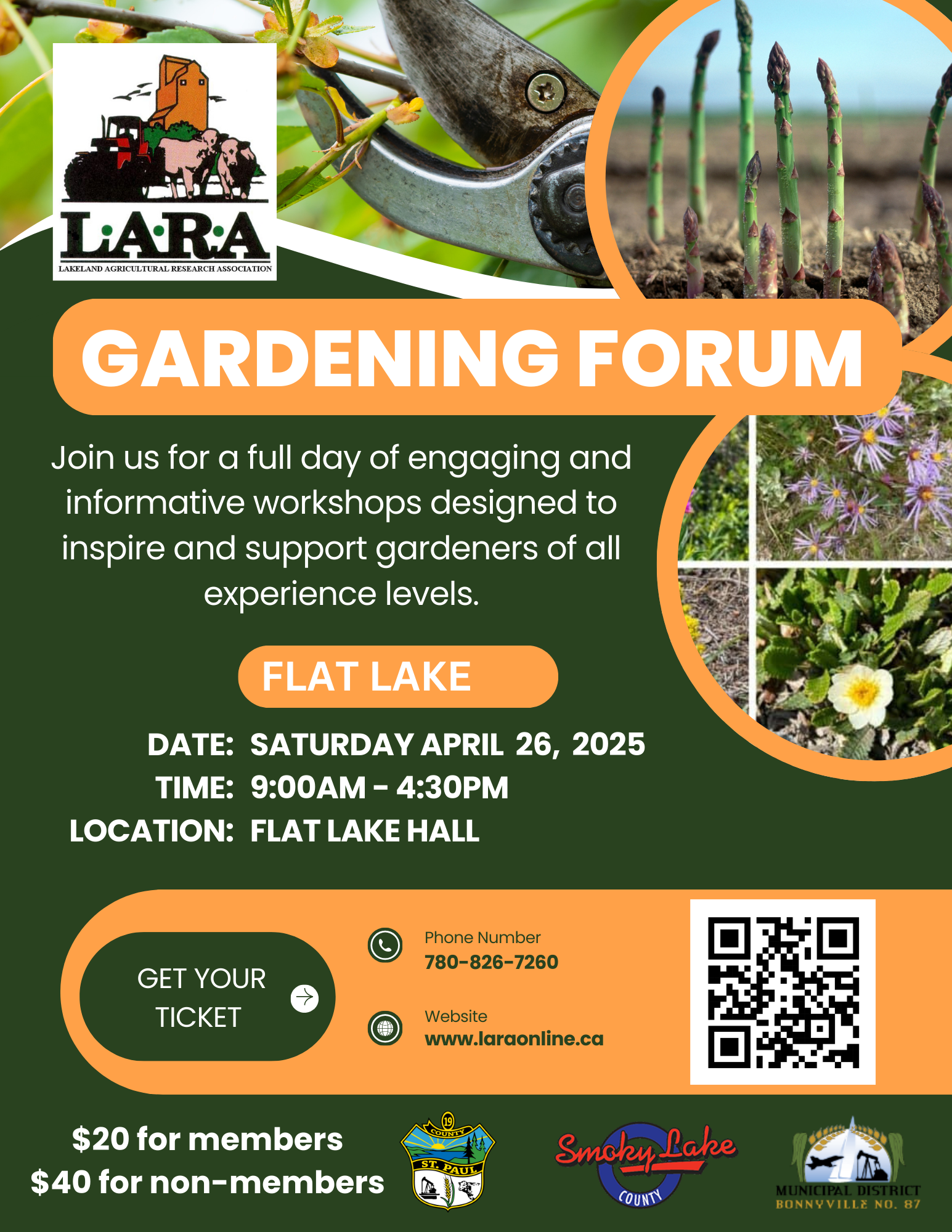 Flat Lake HallJoin us for an exciting Gardening Forum on Saturday, April 26, 2025, from 9:00 AM to 4:30 PM at Flat Lake Hall! This full-day event features engaging workshops designed to inspire and support gardeners of all skill levels. Learn essential gardening techniques, including Composting 101, Pruning Essentials, All About Garlic, and Incorporating Native…